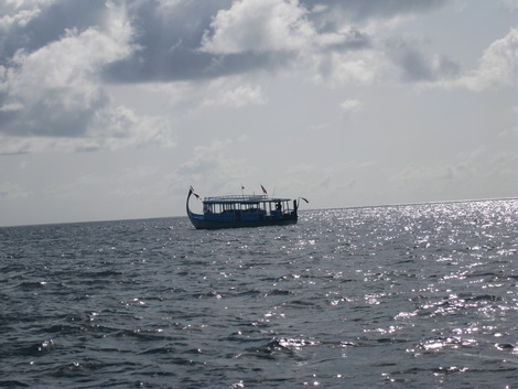 Eccolo il Dhoni ne incontriamo uno e la barca dove sono io da dove sto facendo le foto, sarebbe l'"autobus" locale.