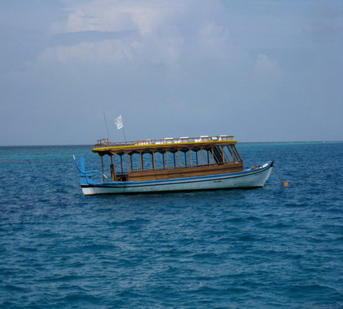 Il tipico Dhoni Maldiviano ancorato poco fuori il villaggio
