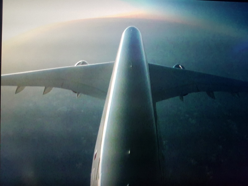 E' l'alba ormai e ci portano la seconda cena a bordo tutto come nel primo volo...l'aereo e un airbuis 350 massima tecnologia touch screen e all'entrata dell'aereo ci sta una sorta di reception con i fiori, luci soffuse a led blu e i posti hanno un monitor touch con telecomand stile iphone touch.