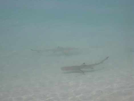 Mettiamo i piedi a bagno fa un caldo incredibile e incontriamo i due nostri amici che sono a poco piu di 1 metro dalla riva 2 squaletti carini baby.
